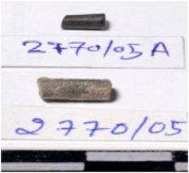 | Description / विवरण | A fragment of a stone drill bit circular in section broken both end of smooth surface. |