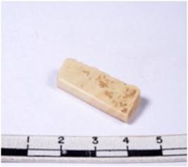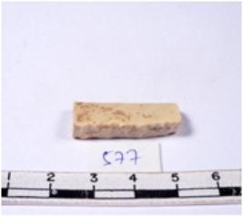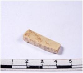 | Description / विवरण | A fragment of a rectangular shaped chert blade showing dorsal sides with sharp edges having smooth surface and triangular section. |