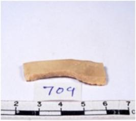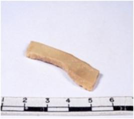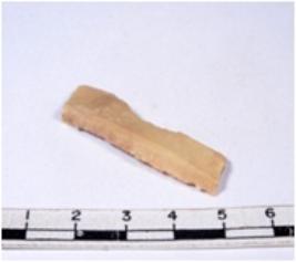 | Description / विवरण | A fragment of a rectangular shaped chert blade showing dorsal sides with broken edges having smooth surface and triangular section. |