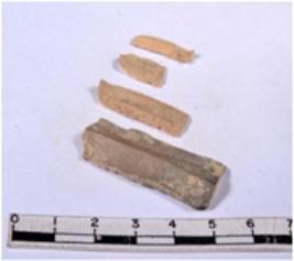 | Description / विवरण | A fragment of a rectangular shaped chert blade showing dorsal sides with sharp edges having smooth surface and triangular section. |