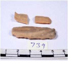 | Description / विवरण | A fragment of a rectangular shaped chert blade showing dorsal sides with sharp edges having smooth surface and triangular section. |