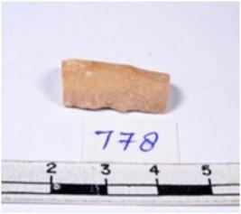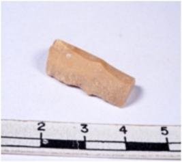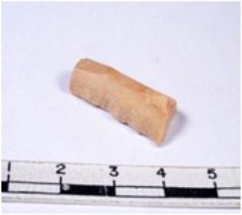 | Description / विवरण | A fragment of a rectangular shaped chert blade showing dorsal sides with sharp cutting edges having smooth surface and triangular section. |