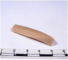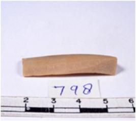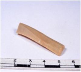 | Description / विवरण | A fragment of a rectangular shaped chert blade showing dorsal sides with sharp cutting edges having smooth surface and triangular section. |