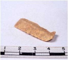 | Description / विवरण | A fragment of a rectangular shaped chert blade showing parallel sides with sharp edges having smooth surface and triangular section. |