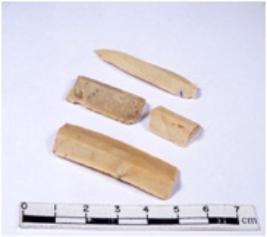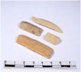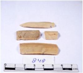 | Description / विवरण | A fragment of a rectangular shaped chert blade showing dorsal sides with sharp cutting edges having smooth surface and triangular section. |
