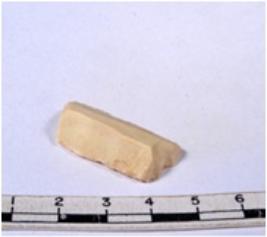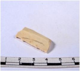 | Description / विवरण | A fragment of a rectangular shaped chert blade showing dorsal sides with sharp edges having smooth surface and triangular section. |
