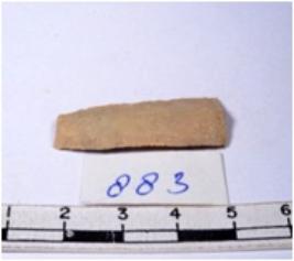 | Description / विवरण | A fragment of a rectangular shaped chert blades showing dorsal sides with sharp edges having smooth surface and triangular section. |