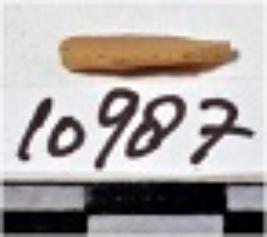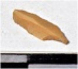 | Description / विवरण | A fragment of a stone drill bit having pointed from one side of smooth surface. |