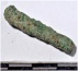 | Description / विवरण | A fragment of a copper rod, broken both end, circular in section of rough surface. |