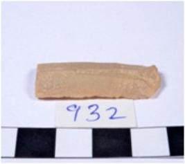 | Description / विवरण | A fragment of a rectangular shaped chert blade showing dorsal sides with sharp edges having smooth surface and triangular section. |