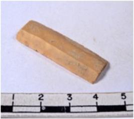 | Description / विवरण | A fragment of a rectangular shaped chert blade showing parallel sides with sharp edges having smooth surface and triangular section. |