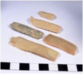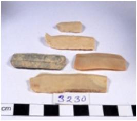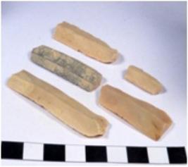 | Description / विवरण | A fragment of a rectangular shaped chert blade showing dorsal sides with sharp edges having smooth surface and triangular section. |