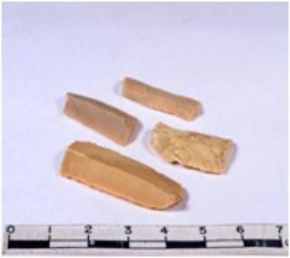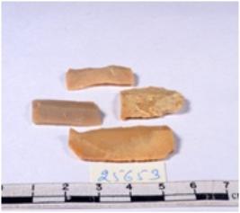 | Description / विवरण | A fragment of a rectangular shaped chert blade showing dorsal sides with sharp edges having smooth surface and triangular section. |