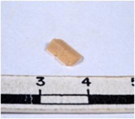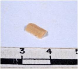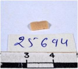 | Description / विवरण | A fragment of a rectangular shaped chert blade showing dorsal sides with sharp cutting edges having smooth surface and triangular section. |