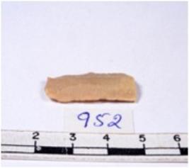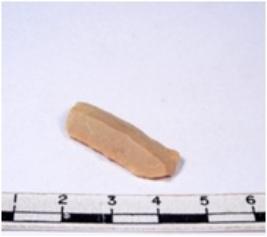 | Description / विवरण | A fragment of a rectangular shaped chert blade showing dorsal sides with sharp cutting edges having smooth surface and triangular section. |
