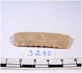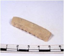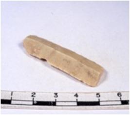 | Description / विवरण | A fragment of a rectangular shaped chert blade showing dorsal sides with sharp edges having smooth surface and triangular section. |