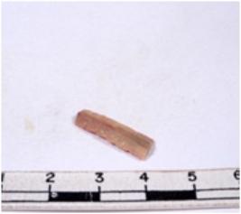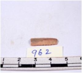 | Description / विवरण | A fragment of a rectangular shaped chert blade showing dorsal sides with sharp edges having smooth surface and triangular section. |