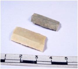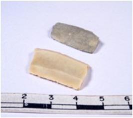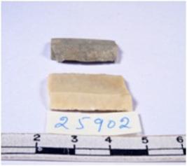 | Description / विवरण | A fragment of a rectangular shaped chert blade showing dorsal sides with sharp cutting edges having smooth surface and triangular section. |