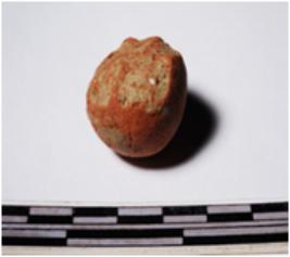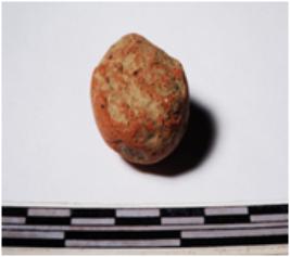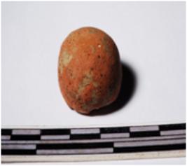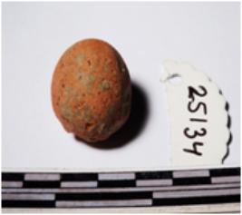 | Description / विवरण | A fragment of a terracotta round shaped sling ball, circular in section of smooth surface. |