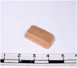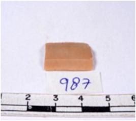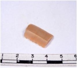 | Description / विवरण | A fragment of a rectangular shaped chert blade showing dorsal sides with sharp cutting edges having smooth surface and triangular section. |