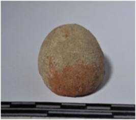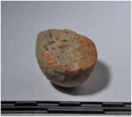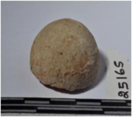 | Description / विवरण | A fragment of a terracotta round ball shaped of smooth surface. |