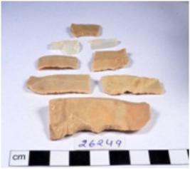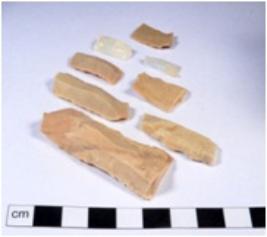 | Description / विवरण | A fragment of a rectangular shaped chert blade showing dorsal sides with sharp edges having smooth surface and triangular section. |