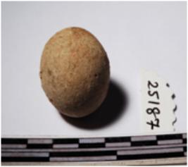 | Description / विवरण | A terracotta round in shaped sling ball of smooth surface. |