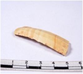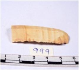 | Description / विवरण | A fragment of a rectangular shaped chert blade showing dorsal sides with sharp cutting edges having smooth surface and triangular section. |