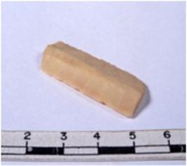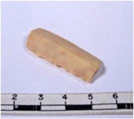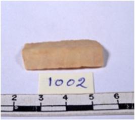 | Description / विवरण | A fragment of a rectangular shaped chert blade showing dorsal sides with sharp edges having smooth surface and triangular section. |