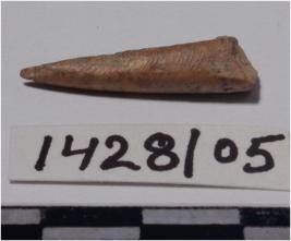 | Description / विवरण | A fragment of a bone point having pointed one end, circular in section of polished surface. |