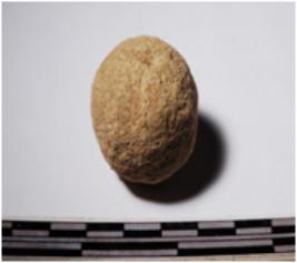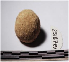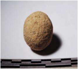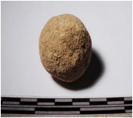| Description / विवरण | A terracotta round in shaped sling ball of rough surface. |