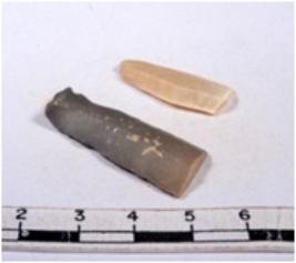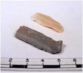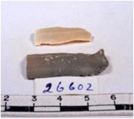 | Description / विवरण | A fragment of a rectangular shaped chert blade showing dorsal sides with sharp edges having smooth surface and triangular section. |