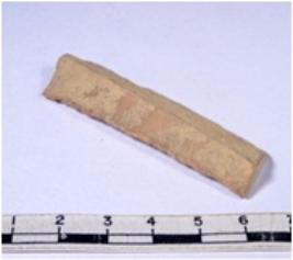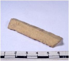 | Description / विवरण | A fragment of a rectangular shaped chert blade showing dorsal sides with sharp edges having smooth surface and triangular section. |