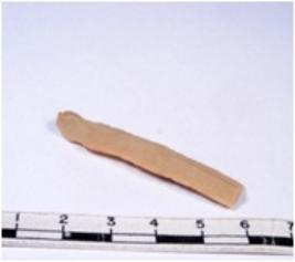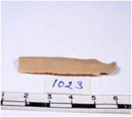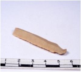 | Description / विवरण | A fragment of a rectangular shaped chert blade showing dorsal sides with sharp cutting edges having smooth surface and triangular section. |