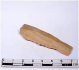 | Description / विवरण | A fragment of a rectangular shaped chert blade showing dorsal sides with sharp edges having smooth surface and triangular section. |