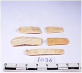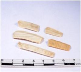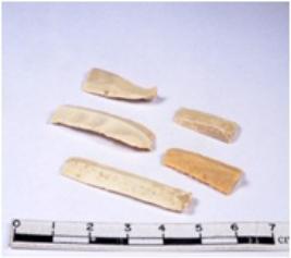 | Description / विवरण | A fragment of a rectangular shaped chert blade showing dorsal sides with sharp cutting edges having smooth surface and triangular section. |