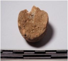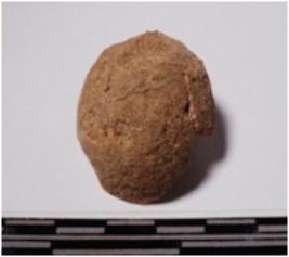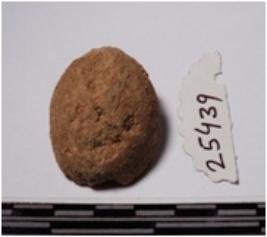 | Description / विवरण | A fragment of a terracotta ball round in shape of smooth surface. |