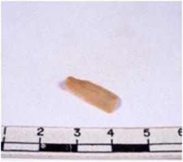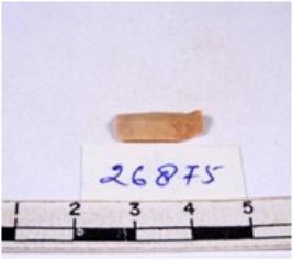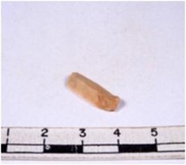 | Description / विवरण | A fragment of a rectangular shaped chert blade showing dorsal sides with sharp edges having smooth surface and triangular section. |