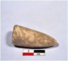 | Description / विवरण | A standard sized shell point, conical in shaped, painted on one end, having smooth surface. |