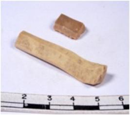 | Description / विवरण | A fragment of a rectangular shaped chert blade showing dorsal sides with sharp edges having smooth surface and triangular section. |