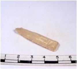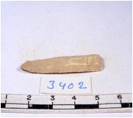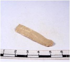 | Description / विवरण | A fragment of a rectangular shaped chert blade showing dorsal sides with sharp cutting edges having smooth surface and triangular section. |