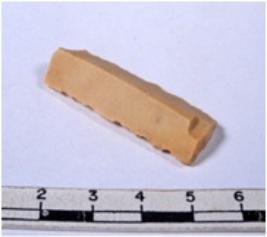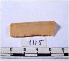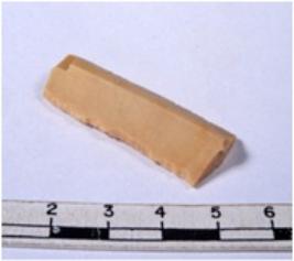 | Description / विवरण | A fragment of a rectangular shaped chert blade showing dorsal sides with sharp edges having smooth surface and triangular section. |