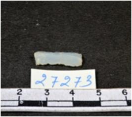 | Description / विवरण | A fragment of a rectangular shaped chalcedony blade showing dorsal sides with sharp edges having smooth surface and triangular section. |