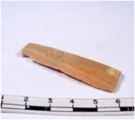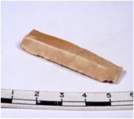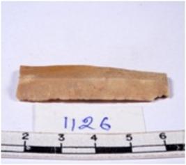 | Description / विवरण | A fragment of a rectangular shaped chert blade showing dorsal sides with sharp edges having smooth surface and triangular section. |