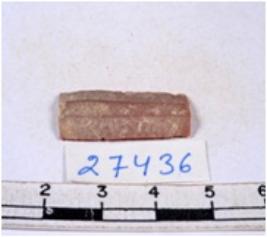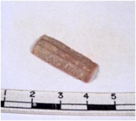 | Description / विवरण | A fragment of a rectangular shaped chert blade showing dorsal sides with sharp edges having smooth surface and triangular section. |
