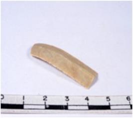 | Description / विवरण | A fragment of a rectangular shaped chert blade showing dorsal sides with sharp cutting edges having smooth surface and triangular section. |