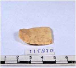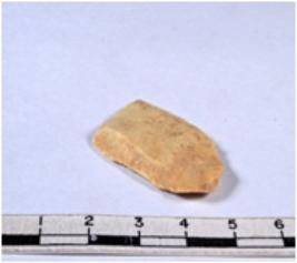 | Description / विवरण | A fragment of a rectangular shaped chert blade showing dorsal sides with sharp cutting edges having smooth surface and triangular section. |