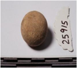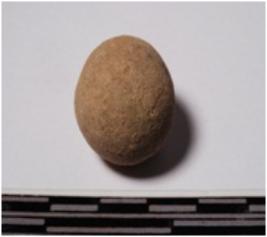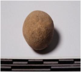 | Description / विवरण | A terracotta round in shaped sling ball of smooth surface. |