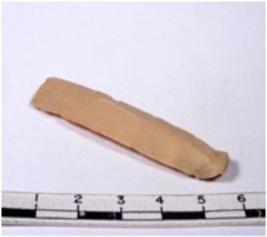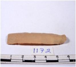 | Description / विवरण | A fragment of a rectangular shaped chert blade showing dorsal sides with sharp edges having smooth surface and triangular section. |