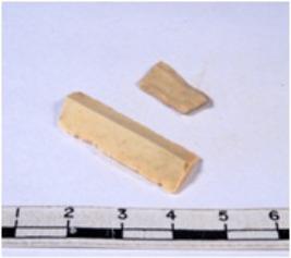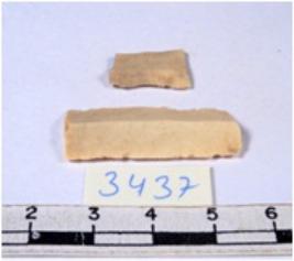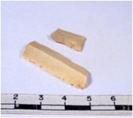| Description / विवरण | A fragment of a rectangular shaped chert blade showing dorsal sides with sharp cutting edges having smooth surface and triangular section. |